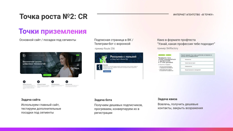Альтернативные точки приземления: квизы, боты, лид‑формы, автоворонки